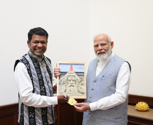 नई दिल्ली, 8 अगस्त (आईएएनएस)। ओडिशा के प्रसिद्ध अंतर्राष्ट्रीय रेत कलाकार सुदर्शन पटनायक ने गुरुवार को प्रधानमंत्री नरेंद्र मोदी से मुलाकात की। इस दौरान प्रधानमंत्री मोदी ने सुदर्शन पटनायक की प्रतिभा की सराहना की और उनके काम की प्रशंसा की।
