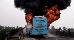 दुर्घटनाग्रस्त बस के यात्रियों ने बताया कि बस से अचानक धुआं निकलता दिखाई दिया और कुछ ही देर में पूरी बस में आग लग गई। उन्होंने बताया कि बस में मौजूद उनका पूरा सामान जलकर खाक हो गया। इस बीच बस में आग लगने के कारण राष्ट्रीय राजमार्ग पर यातायात रुक गया।