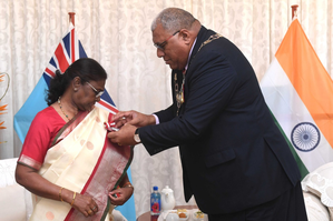 नई दिल्ली, 6 अगस्त (आईएएनएस)। राष्ट्रपति द्रौपदी मुर्मू को फिजी का सर्वोच्च नागरिक पुरस्कार ‘कंपेनियन ऑफ द ऑर्डर ऑफ फिजी’ से सम्मानित किया गया है। फिजी के राष्ट्रपति रातू विलियामे मैवलीली कटोनिवेरे ने उन्हें पुरस्कार सौंपा। उत्तर प्रदेश के मुख्यमंत्री योगी आदित्यनाथ और उत्तराखंड के सीएम पुष्कर सिंह धामी ने खुशी जाहिर करते हुए इसे गर्व का क्षण बताया।