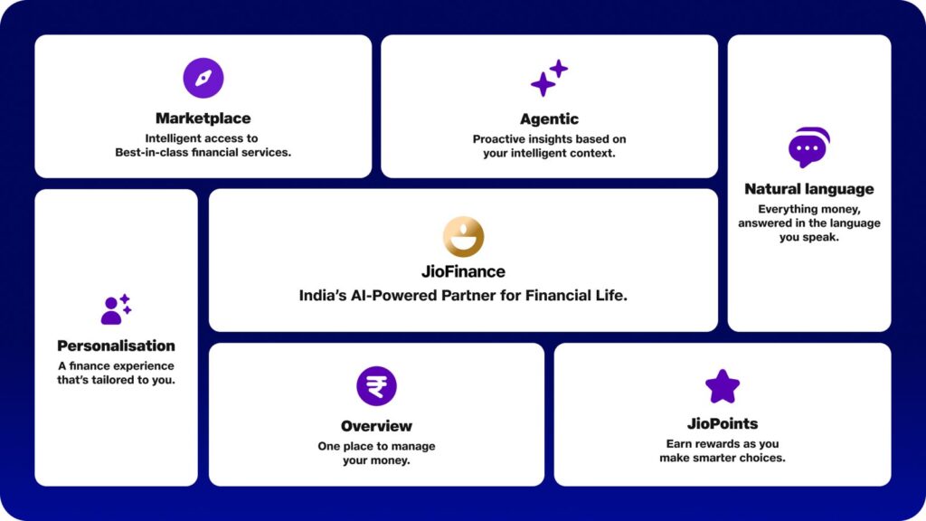 होम लोन, पर्सनल लोन, लोन अगेंस्ट सिक्योरिटीज, क्रेडिट कार्ड, बीमा, UPI, फिक्स्ड डिपॉजिट, डिजिटल गोल्ड और जियोब्लैकरॉक के म्यूचुअल फंड जैसे विकल्प एक ही प्लेटफॉर्म पर उपलब्ध होंगे। यूज़र को अलग-अलग स्क्रीन पर जाने की जरूरत नहीं होगी। चैट-बार में अपनी जरूरत टाइप करने पर, संबंधित विकल्प आपके सामने होंगे। इसके अलावा, हर ट्रांजैक्शन पर जियोपॉइंट्स मिलेंगे, जिन्हें विभिन्न रिवॉर्ड्स के लिए रिडीम किया जा सकेगा।
