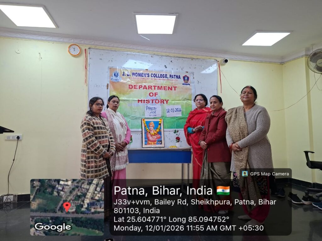 इस अवसर पर महाविद्यालय की छात्राओं ने “स्वामी विवेकानंद की जीवनी- युवाओं के लिए प्रेरणा” नामक विषय पर भाषण प्रतियोगिता में भाग लिया। । इस अवसर पर महाविद्यालय की प्राचार्या डॉ मीरा कुमारी एवं इतिहास विभाग की विभागाध्यक्षा प्रो. सुमिता सिंह और वरिष्ठ प्राध्यापिका प्रो. कुमकुम कुमारी , डॉ. लक्ष्मी कुमारी , पल्लवी निशा एवं डॉ. कविता लखैयार ने स्नातकोत्तर इतिहास की द्वितीय सत्र तथा चतुर्थ सत्र और स्नातक द्वितीय सत्र की छात्राओं को संबोधित किया।